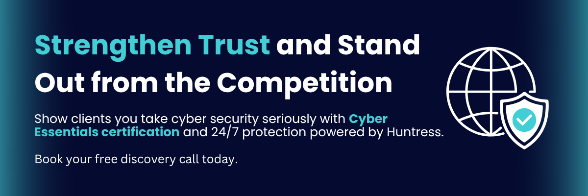This partnership reinforces your credibility in tenders and pitches by showing that your defences go beyond basic compliance – combining certification-backed assurance with continuous 24/7 threat monitoring powered by Huntress. Prospective clients see not only that you meet recognised cyber security standards, but that you actively detect and neutralise emerging threats before they can cause disruption.